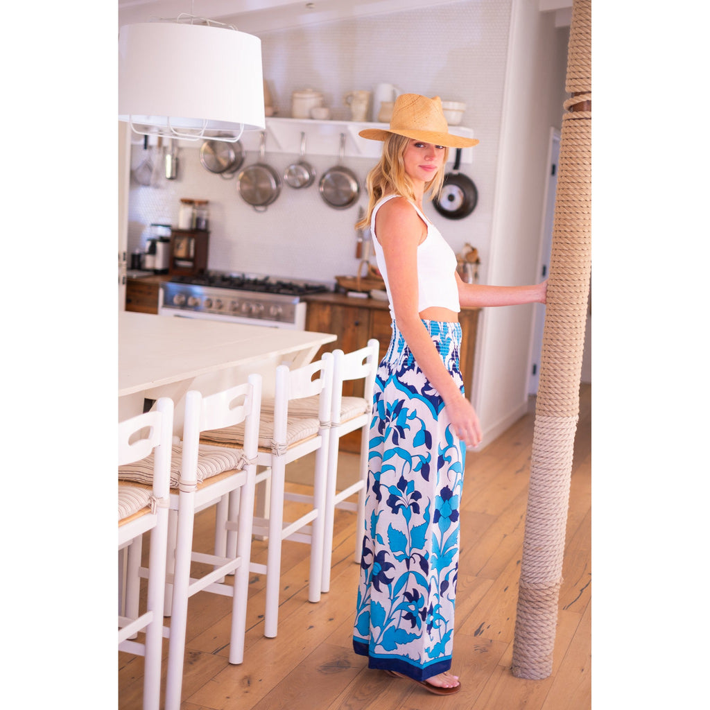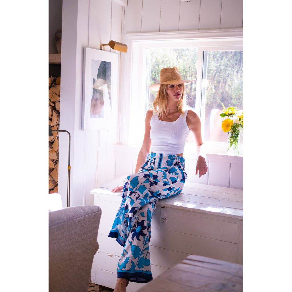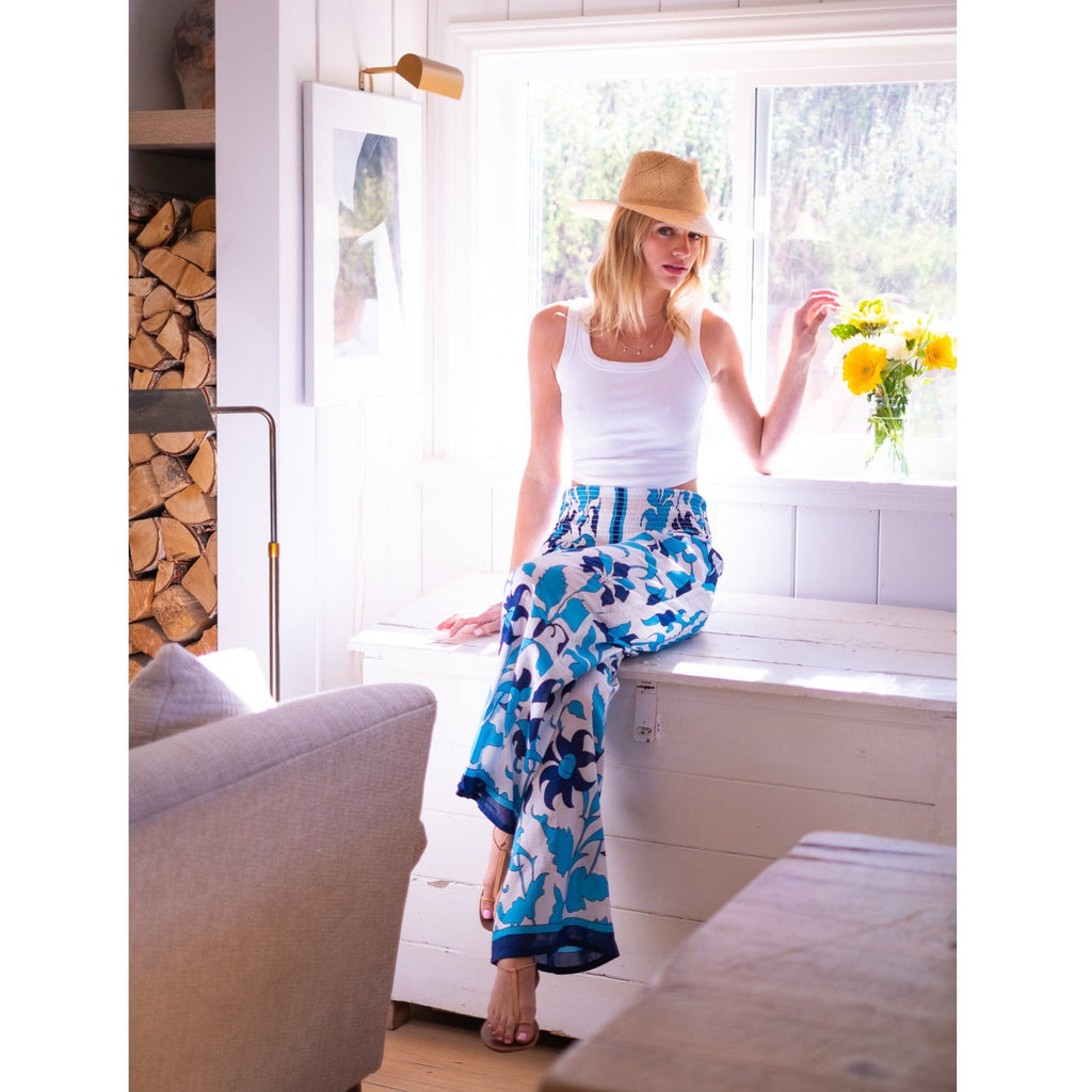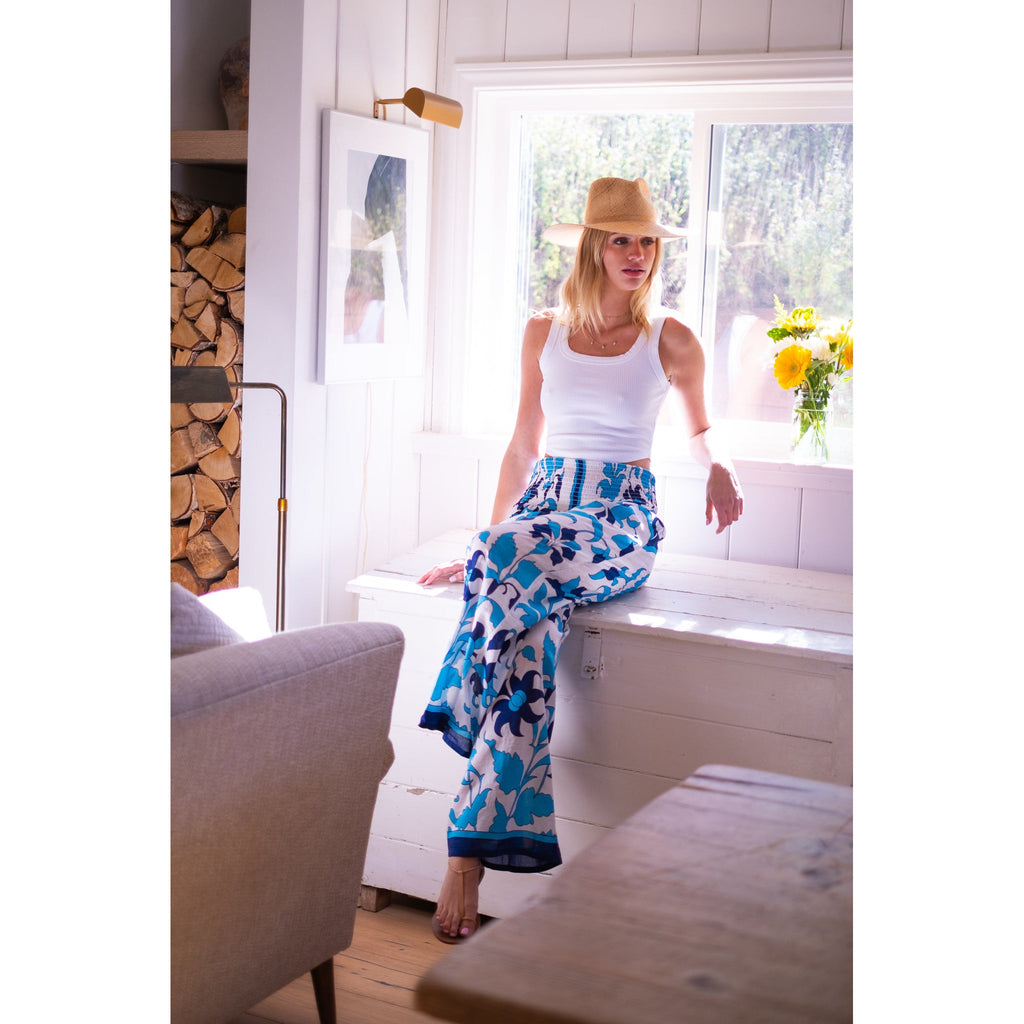 Beach Pants $106.00 $265.00 size L XS S M L XL XS S M L XL Add to Cart This item is a recurring or deferred purchase. By continuing, I agree to the cancellation policy and authorize you to charge my payment method at the prices, frequency and dates listed on this page until my order is fulfilled or I cancel, if permitted. Silk cotton voile hand blocked smocked waist pants with flowing legs