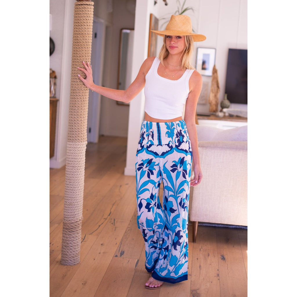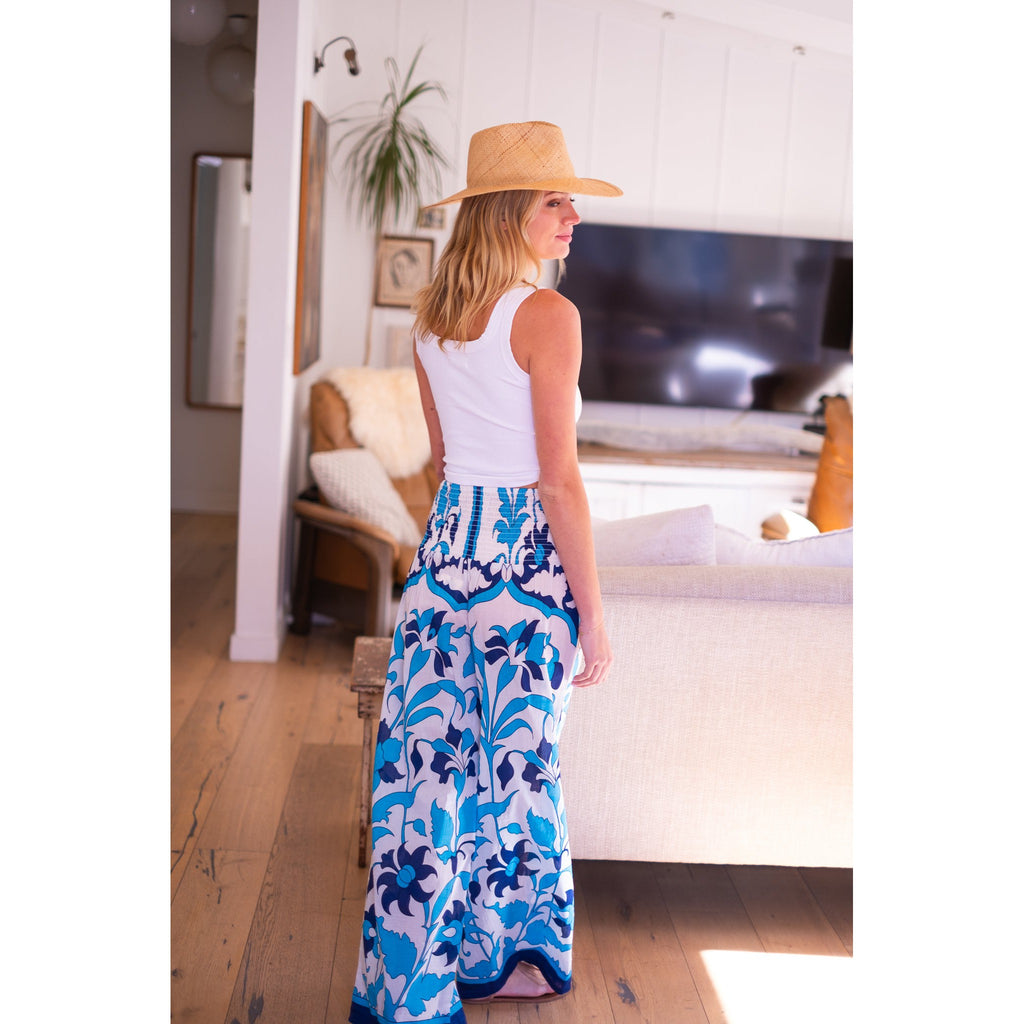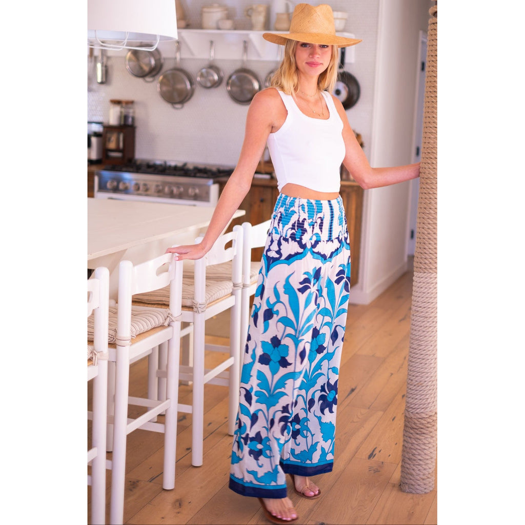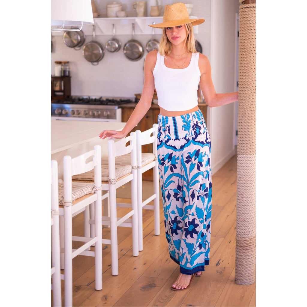 Beach Pants $106.00 $265.00 size L XS S M L XL XS S M L XL Add to Cart This item is a recurring or deferred purchase. By continuing, I agree to the cancellation policy and authorize you to charge my payment method at the prices, frequency and dates listed on this page until my order is fulfilled or I cancel, if permitted. Silk cotton voile hand blocked smocked waist pants with flowing legs