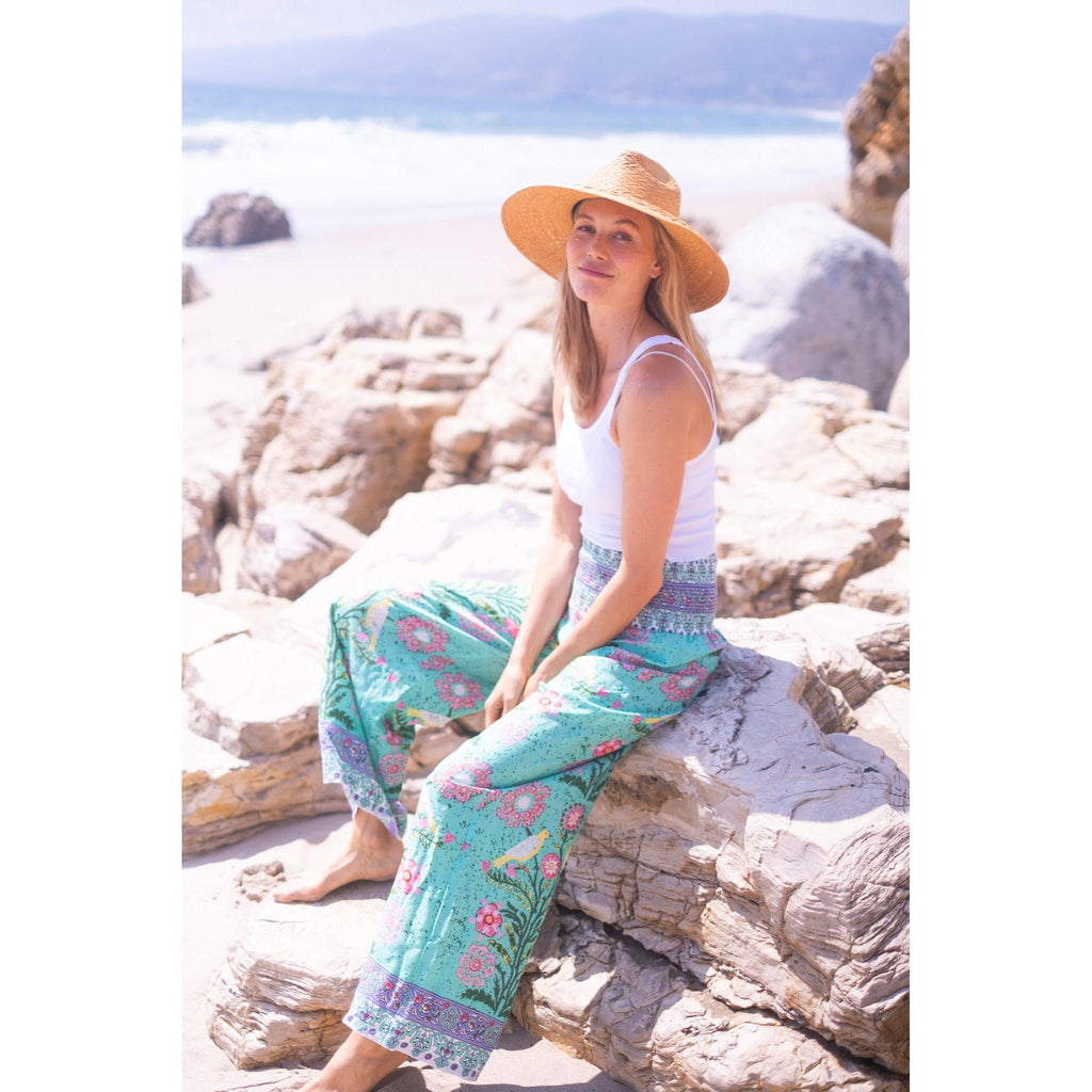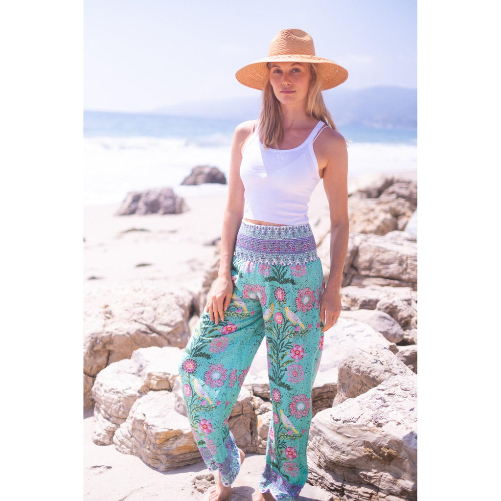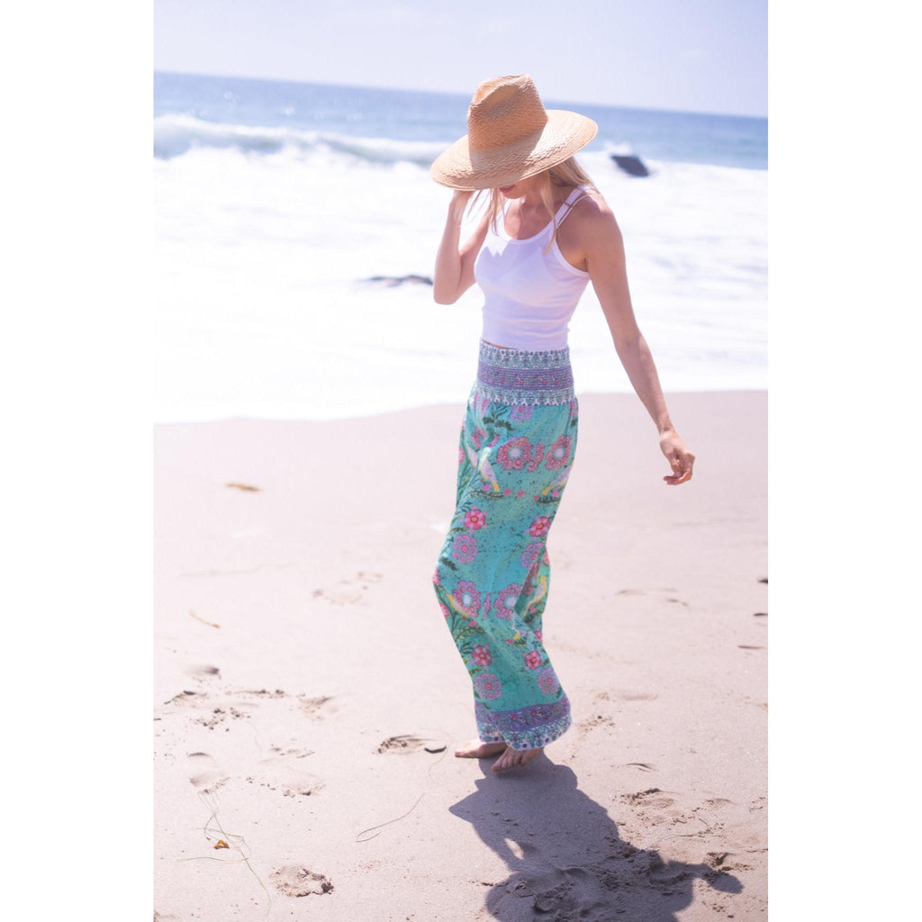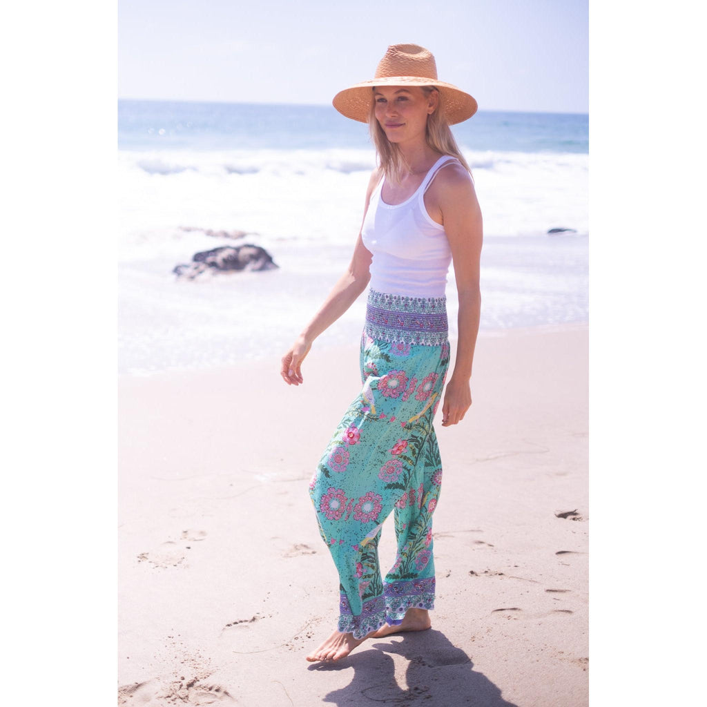 Beach Pants $134.00 $268.00 size XS XS S M L XL XS S M L XL Add to Cart This item is a recurring or deferred purchase. By continuing, I agree to the cancellation policy and authorize you to charge my payment method at the prices, frequency and dates listed on this page until my order is fulfilled or I cancel, if permitted. A buttery soft rayon tencel fabric printed smocked waist pants with flowing legs