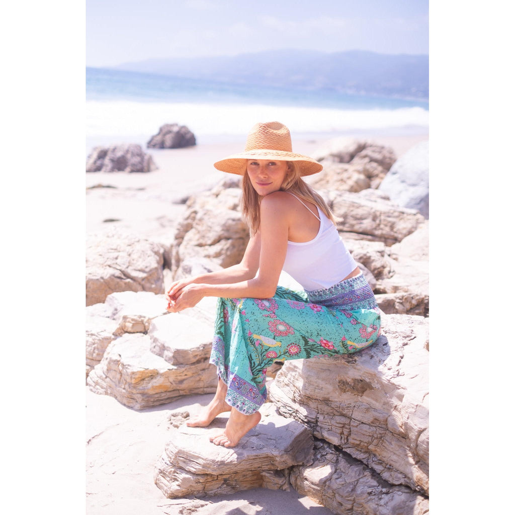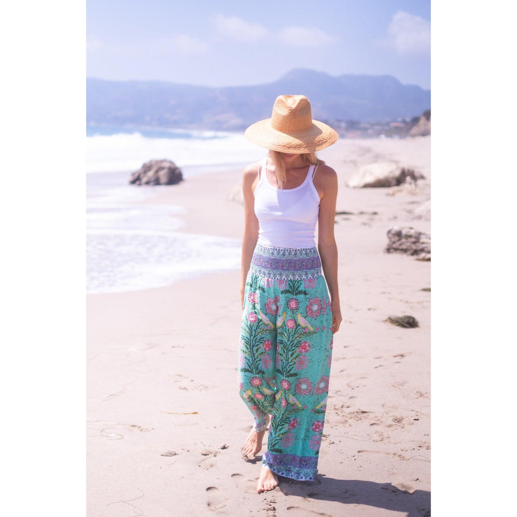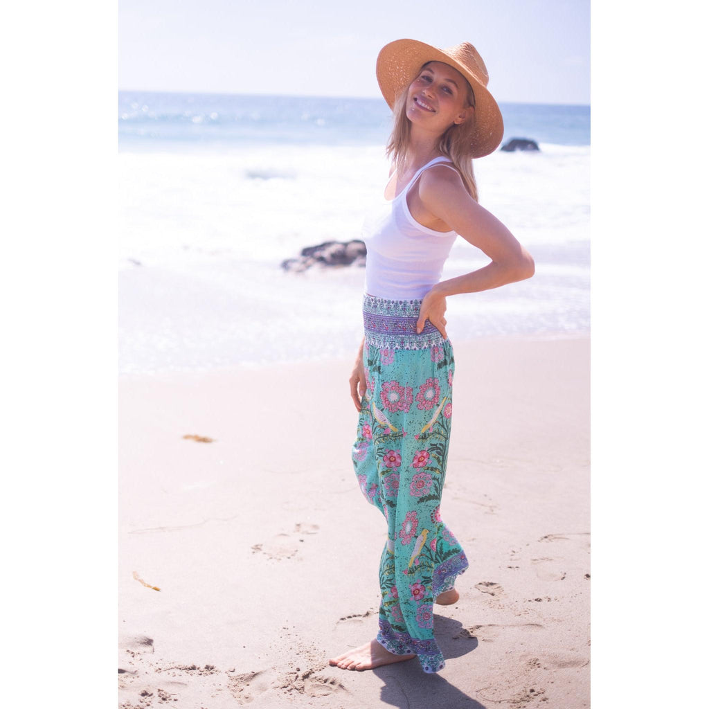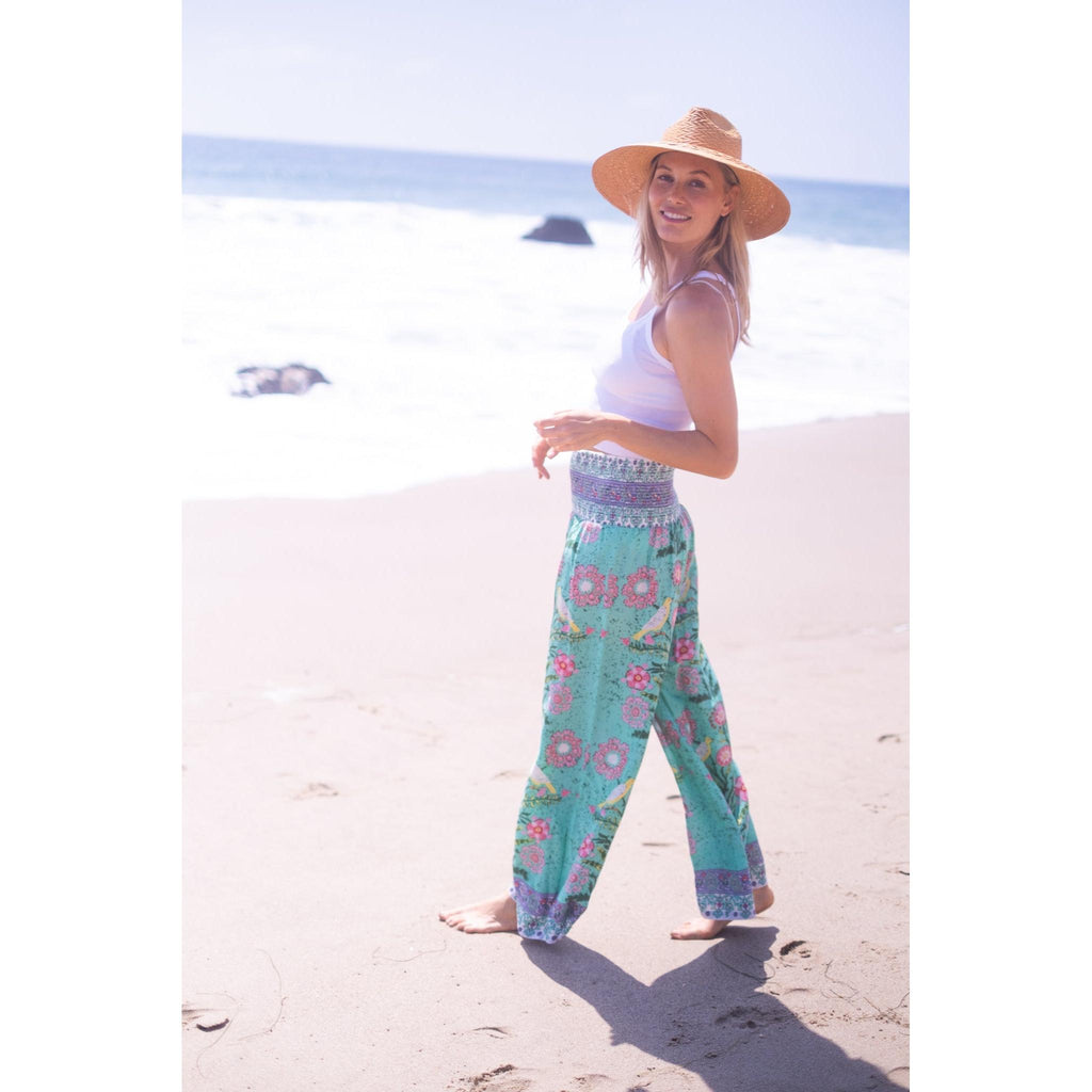 Beach Pants $134.00 $268.00 size XS XS S M L XL XS S M L XL Add to Cart This item is a recurring or deferred purchase. By continuing, I agree to the cancellation policy and authorize you to charge my payment method at the prices, frequency and dates listed on this page until my order is fulfilled or I cancel, if permitted. A buttery soft rayon tencel fabric printed smocked waist pants with flowing legs