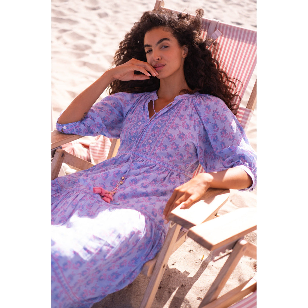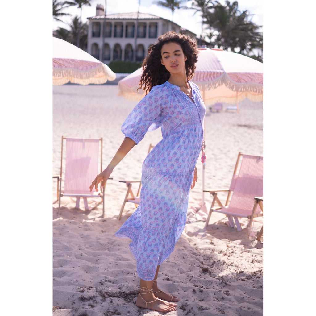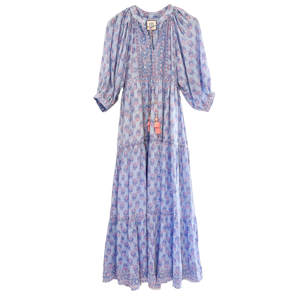 Elizabeth Maxi Dress $210.00 $350.00 size XS XS S M L XL XS S M L XL Out of stock Silk cotton voile hand block tassel tie neckline maxi dress with 3/4 balloon sleeves