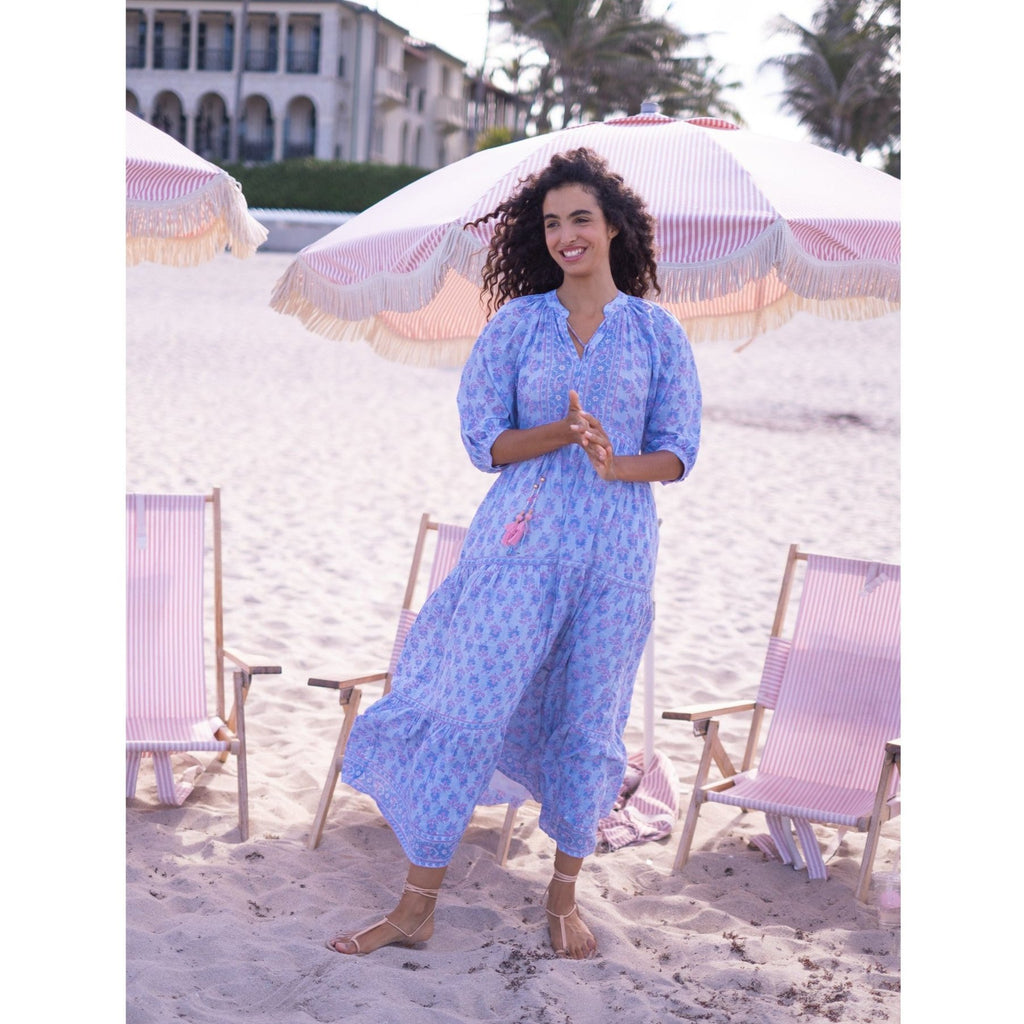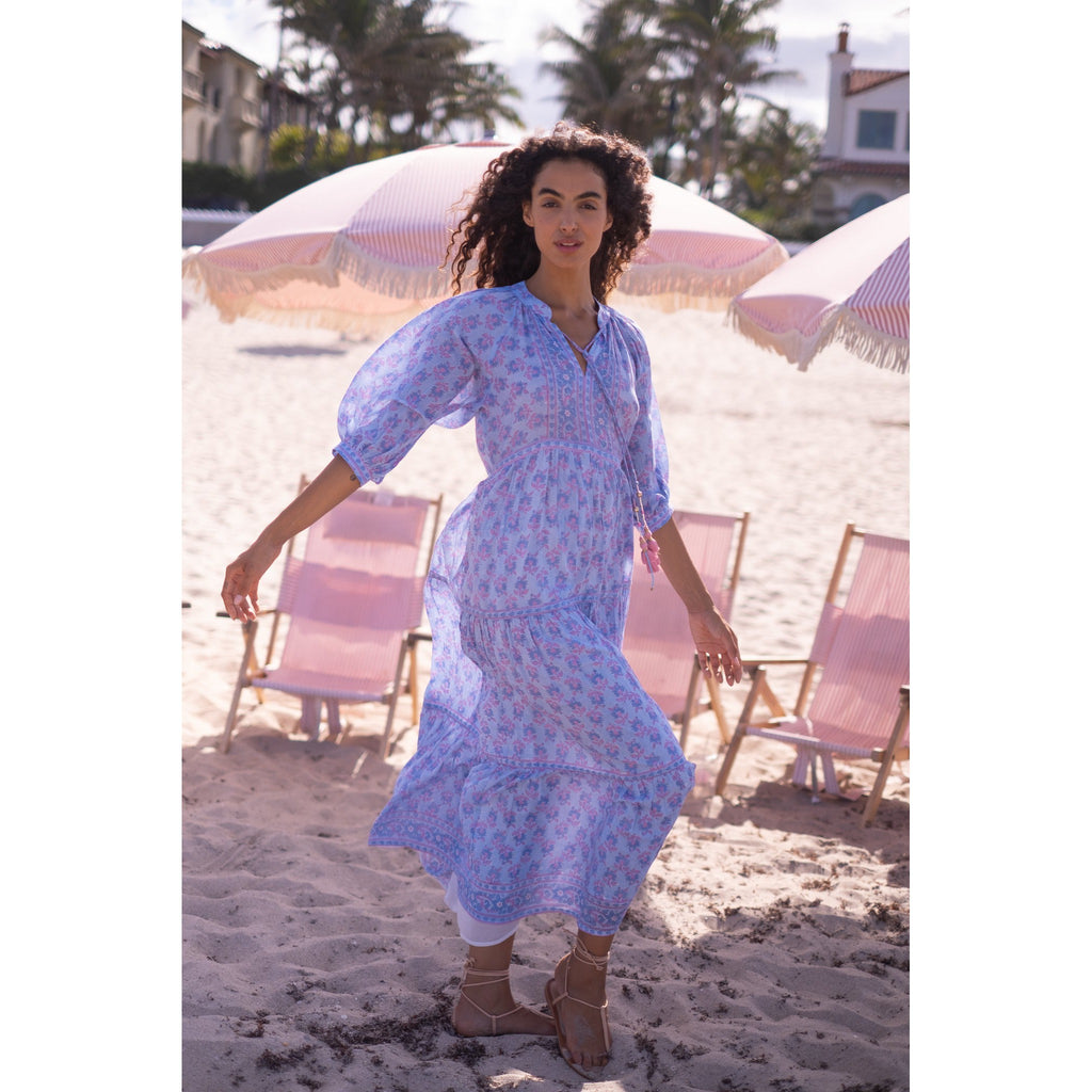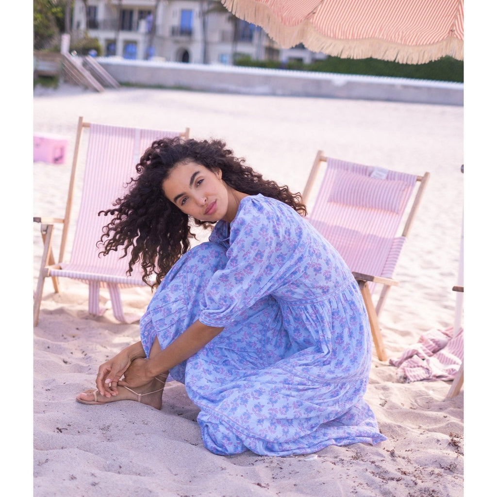 Elizabeth Maxi Dress $210.00 $350.00 size XS XS S M L XL XS S M L XL Out of stock Silk cotton voile hand block tassel tie neckline maxi dress with 3/4 balloon sleeves