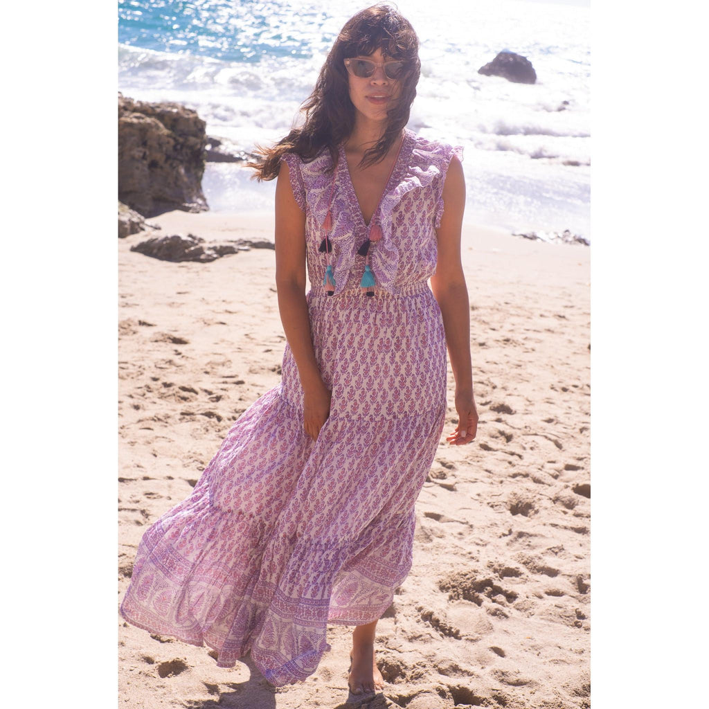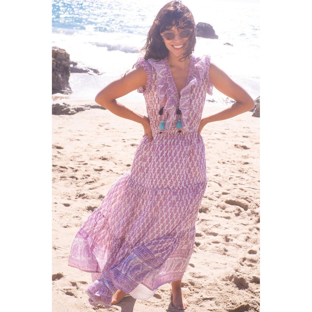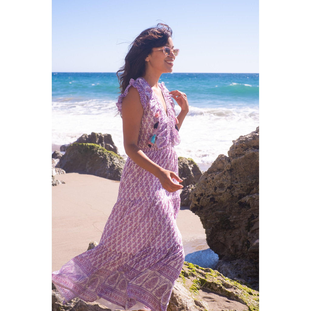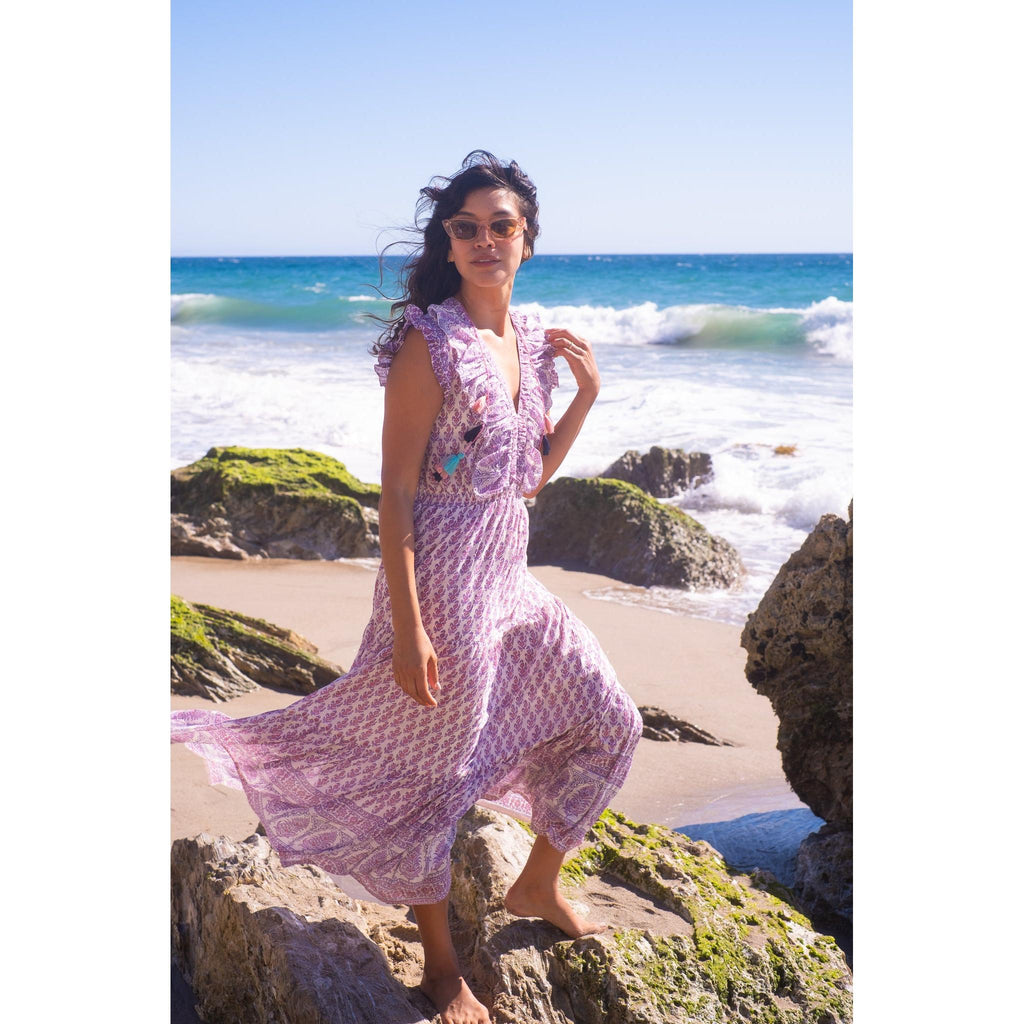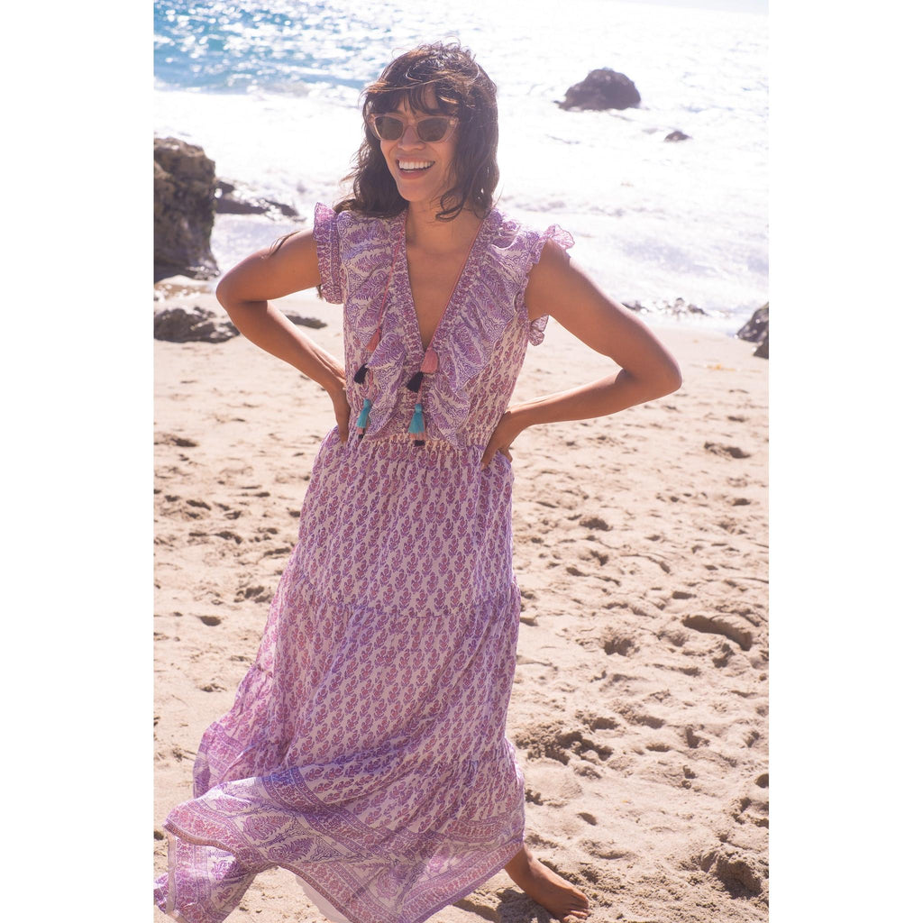Rainey Maxi Dress $385.00 size M XS S M L XS S M L Add to Cart This item is a recurring or deferred purchase. By continuing, I agree to the cancellation policy and authorize you to charge my payment method at the prices, frequency and dates listed on this page until my order is fulfilled or I cancel, if permitted. Silk cotton voile hand blocked ruffle maxi dress with tiered skirt