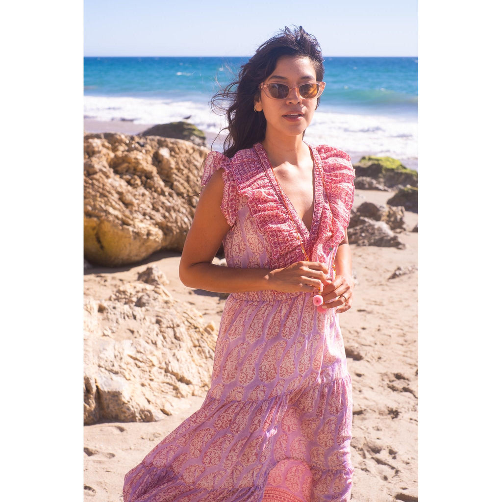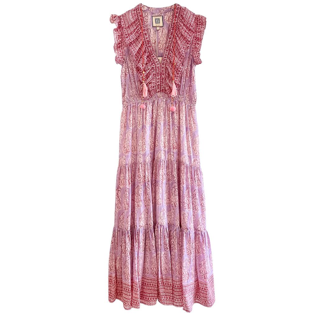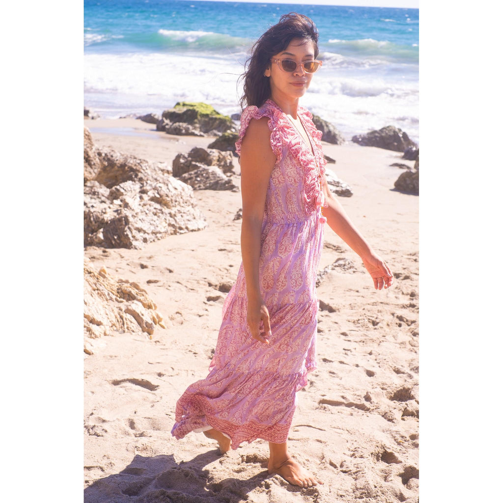Rainey Maxi Dress $385.00 size XS XS S M L XS S M L Add to Cart This item is a recurring or deferred purchase. By continuing, I agree to the cancellation policy and authorize you to charge my payment method at the prices, frequency and dates listed on this page until my order is fulfilled or I cancel, if permitted. Silk cotton voile hand blocked ruffle maxi dress with tiered skirt