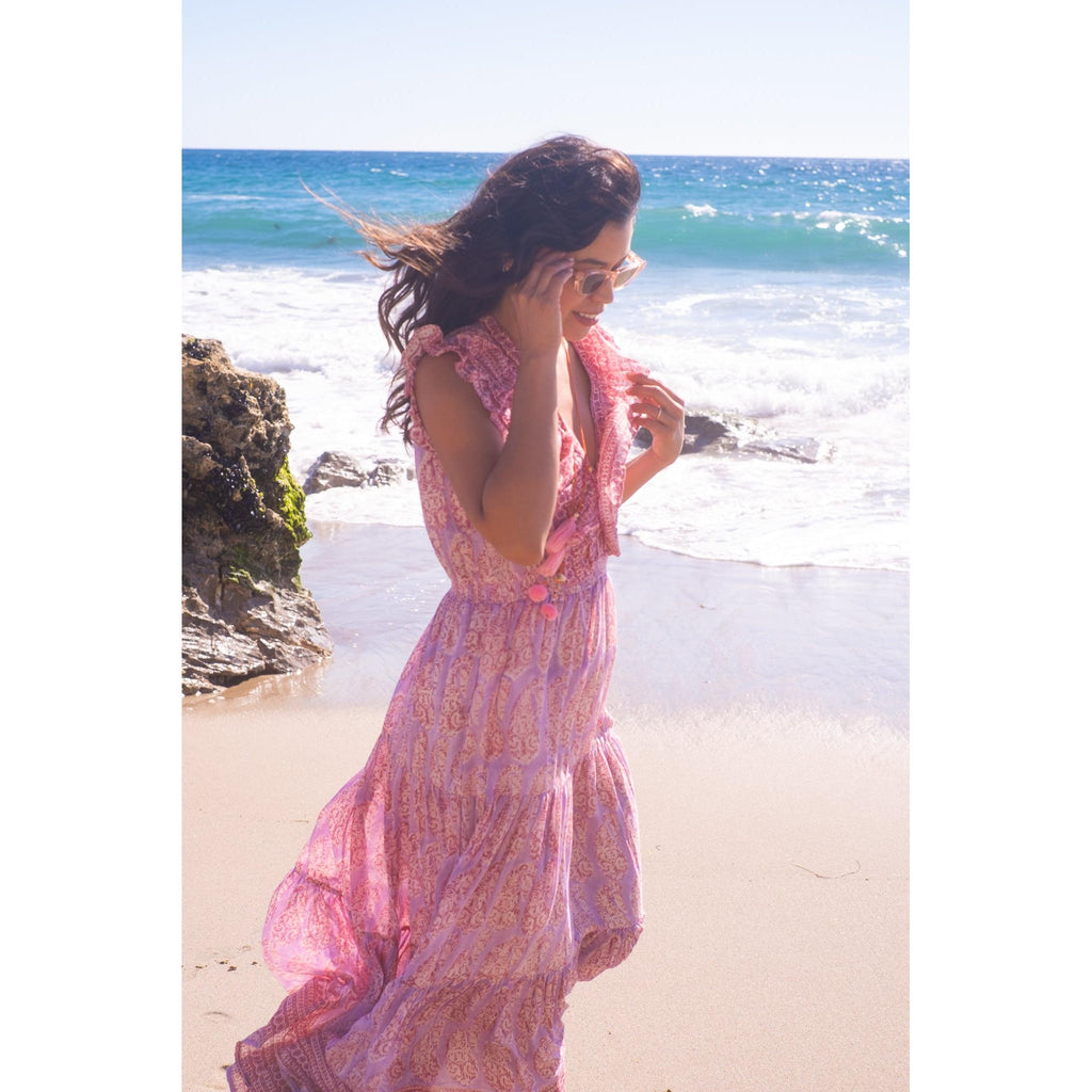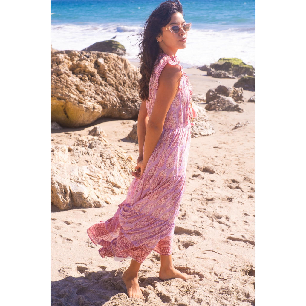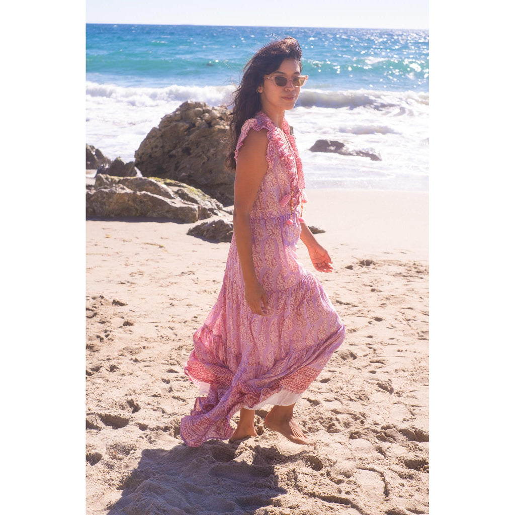 Rainey Maxi Dress $385.00 size XS XS S M L XS S M L Add to Cart This item is a recurring or deferred purchase. By continuing, I agree to the cancellation policy and authorize you to charge my payment method at the prices, frequency and dates listed on this page until my order is fulfilled or I cancel, if permitted. Silk cotton voile hand blocked ruffle maxi dress with tiered skirt